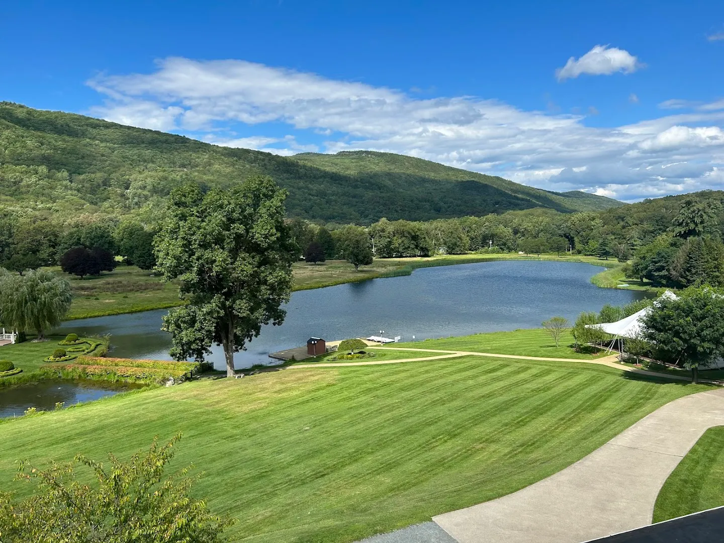 Meadows fan out to old stone trails and a private lake hums under sunrise. Group lodges, yoga halls, and wildflower-strewn grounds reward unplugged gathering and contemplative hikes.