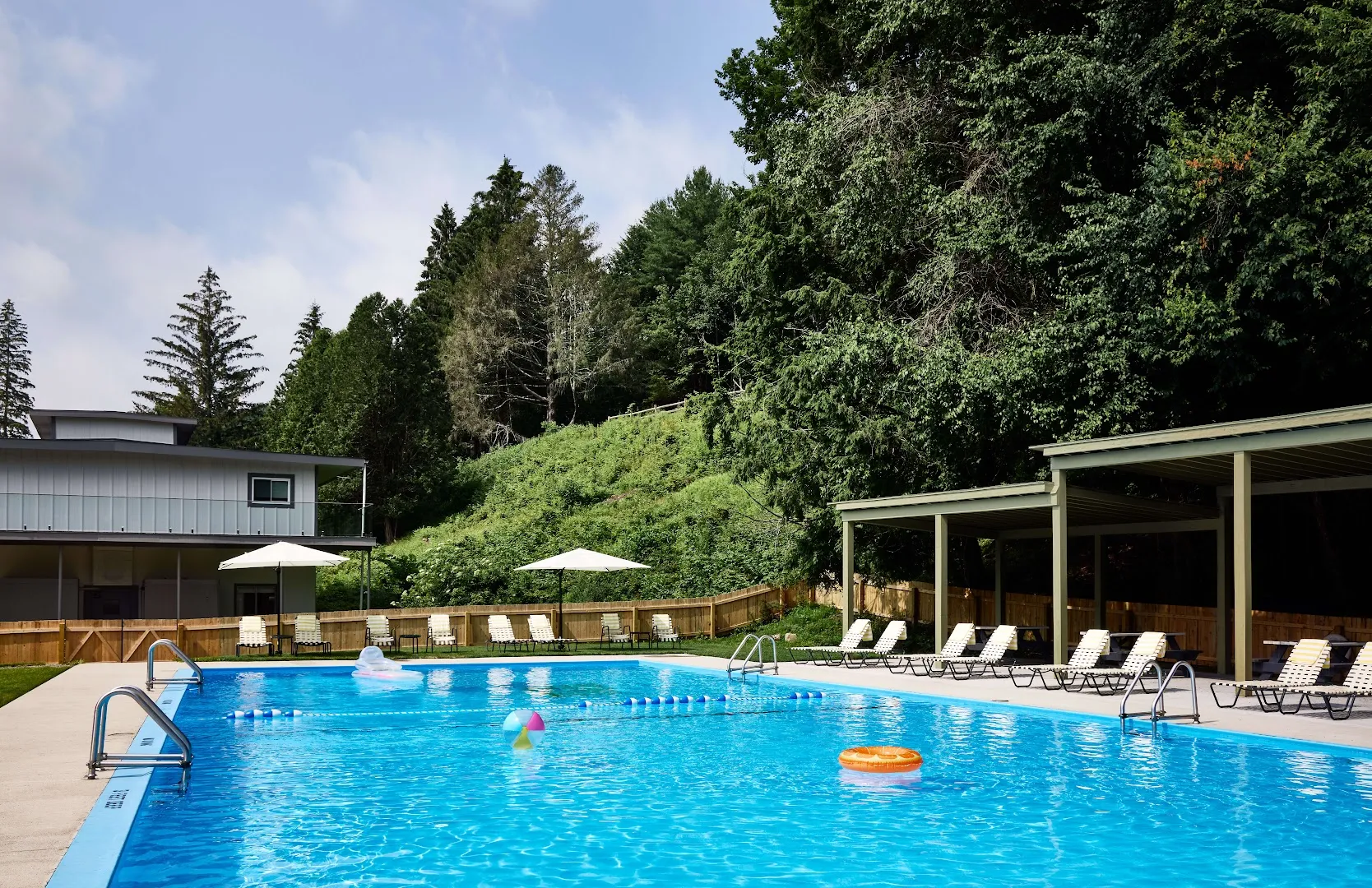 🥾 Trailhead Tip: The meadow path behind the pool loops down to the lake—best in early morning light or for catching sunset reflections.