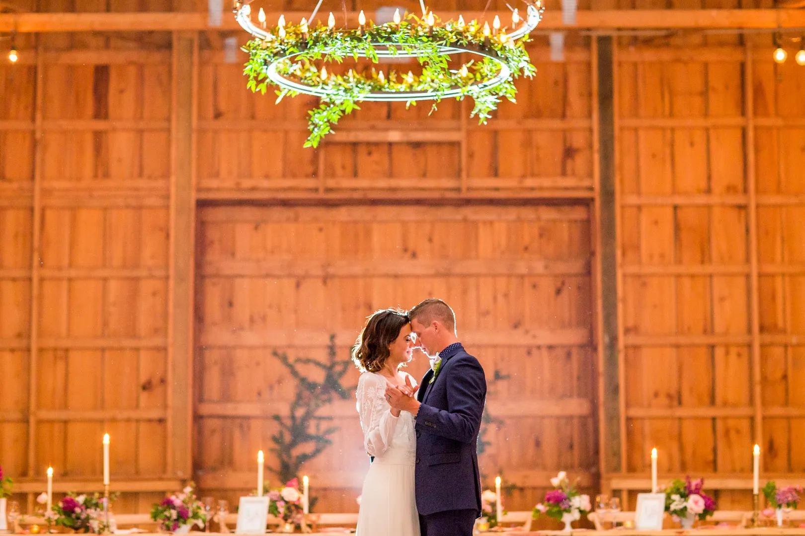 Wild hay fields sweep across the valley at Hayfield, and inside the restored barns light filters through historic timbers. A ceremony by the old apple trees, cocktails under festoon lights, and a swing-set dance floor make it feel like a weekend long-weekend re-imagined.
