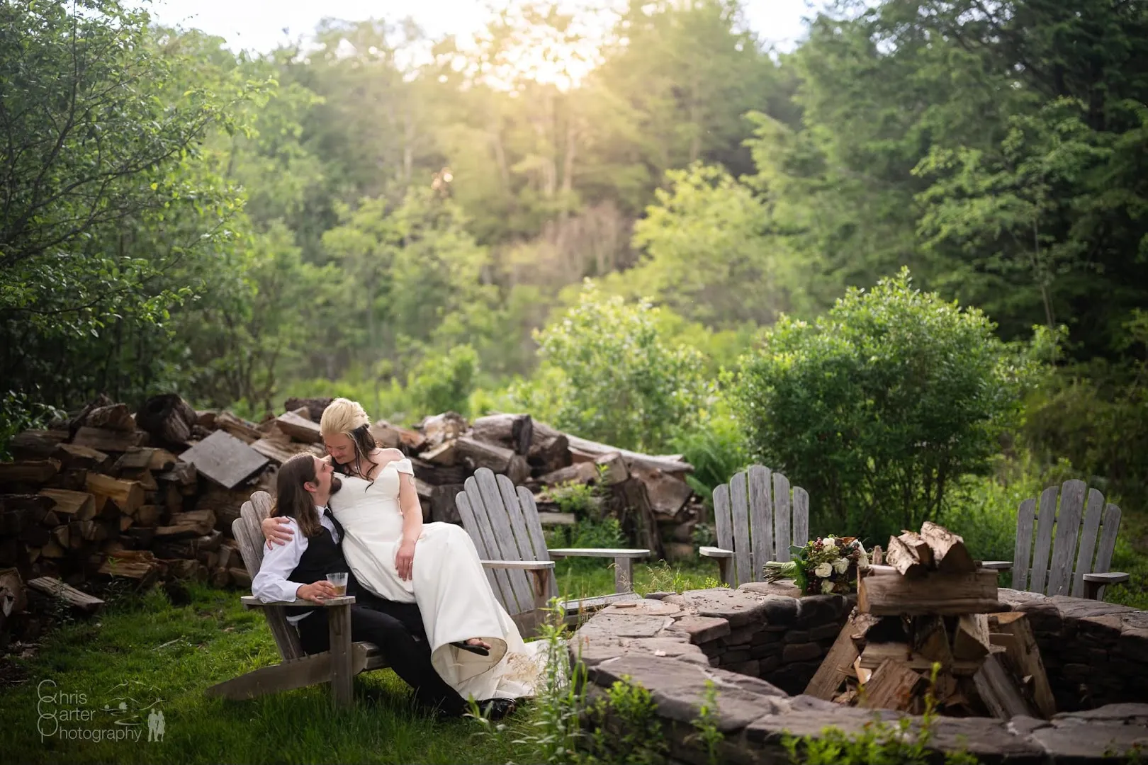 Foxfire Mountain House sits tucked in the trees where candles flicker against Moroccan tiles and long tables stretch beneath twinkling lights. Ceremonies unfold beside lily ponds and stone paths, receptions spill into the inn’s veranda, and late nights carry on with fire pits, cocktails, and the hush of mountain air.