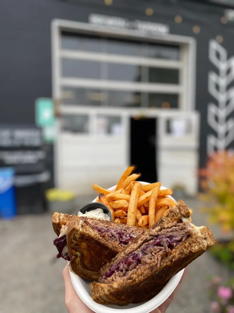Tent lights and malty air set an open scene for house-malted IPAs and pretzels. Fast-moving burgers, vegan plates, and frozen beer slushies reflect their on-site malt program and ever-changing tap list.