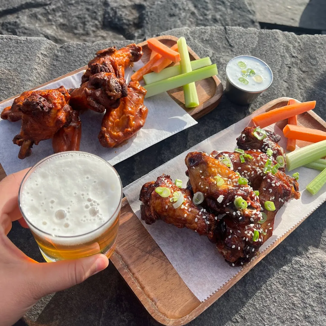Worn brick and battered bar tops hold afternoon sun and steady taps, sports rolling on TVs. Twelve craft beers and an OG chicken sandwich headline a no-nonsense menu alongside a shaded terrace.