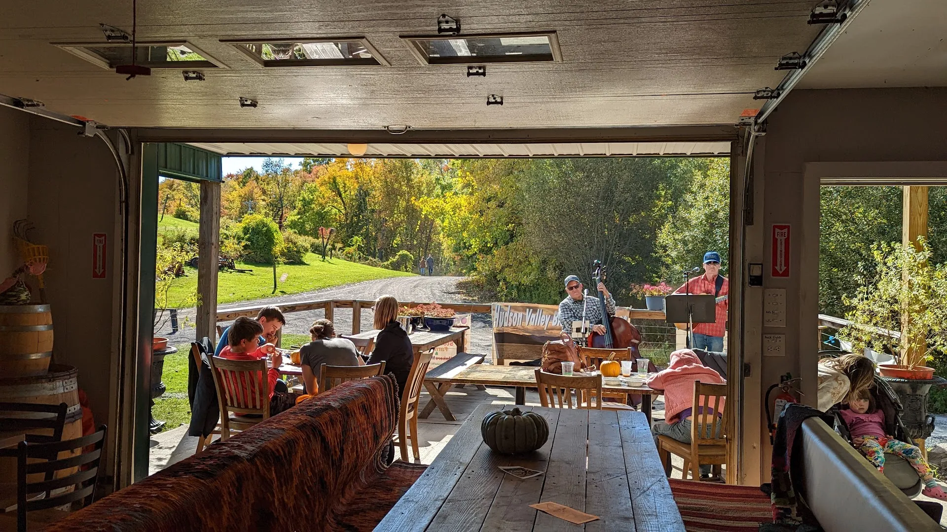 ✔ Outdoor tables on grass; not wheelchair accessible—restrooms in barn