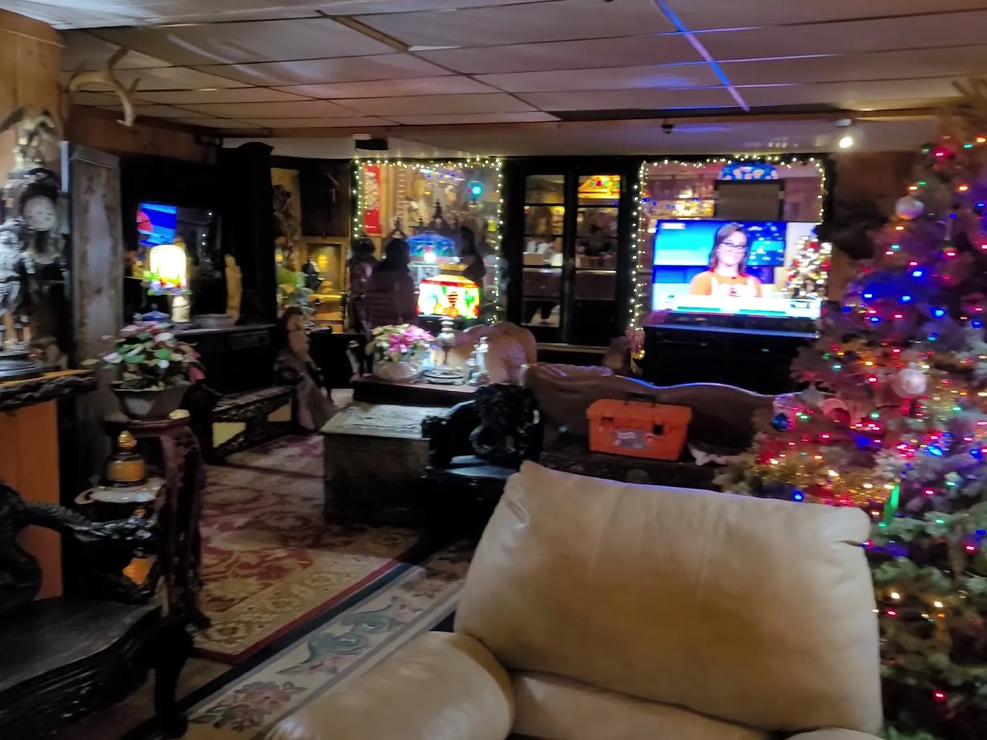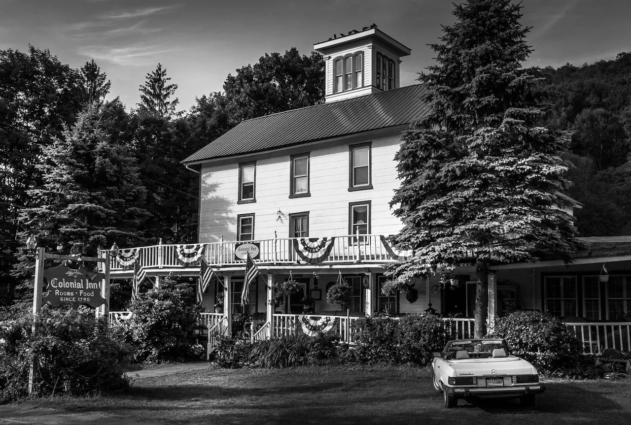 The Colonial Inn greets you with porch light and the clatter of antiques, shelves loaded with odd finds, and hosts who know half the valley. The scent of bacon wafts from the kitchen, and laughter spills out of the bar, while dogs and a parrot eye the action from sunny corners.