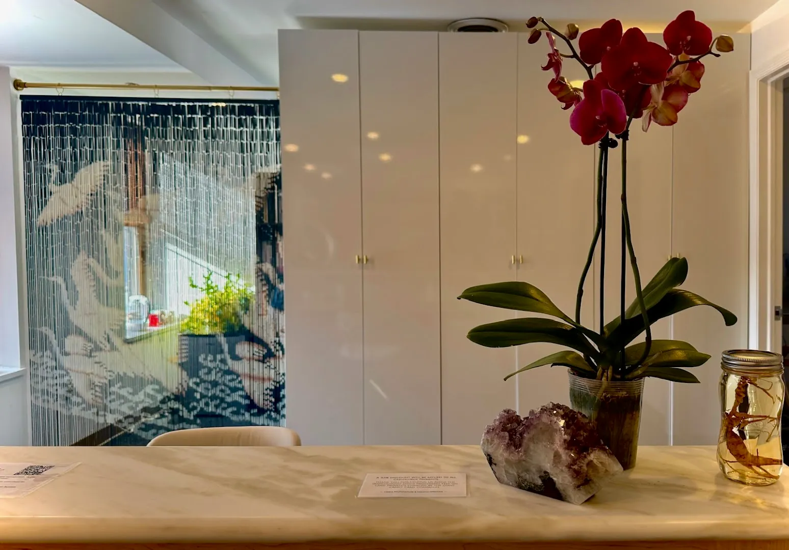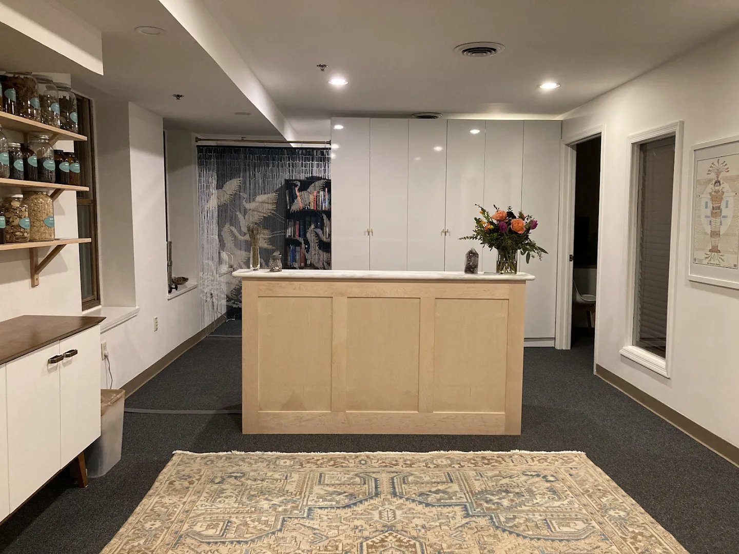 Light settles into soft rooms at Crane Acupuncture, quiet and grounded. Wooden floors, neatly lined herbs, gentle music in the background—it’s a place to land and exhale.