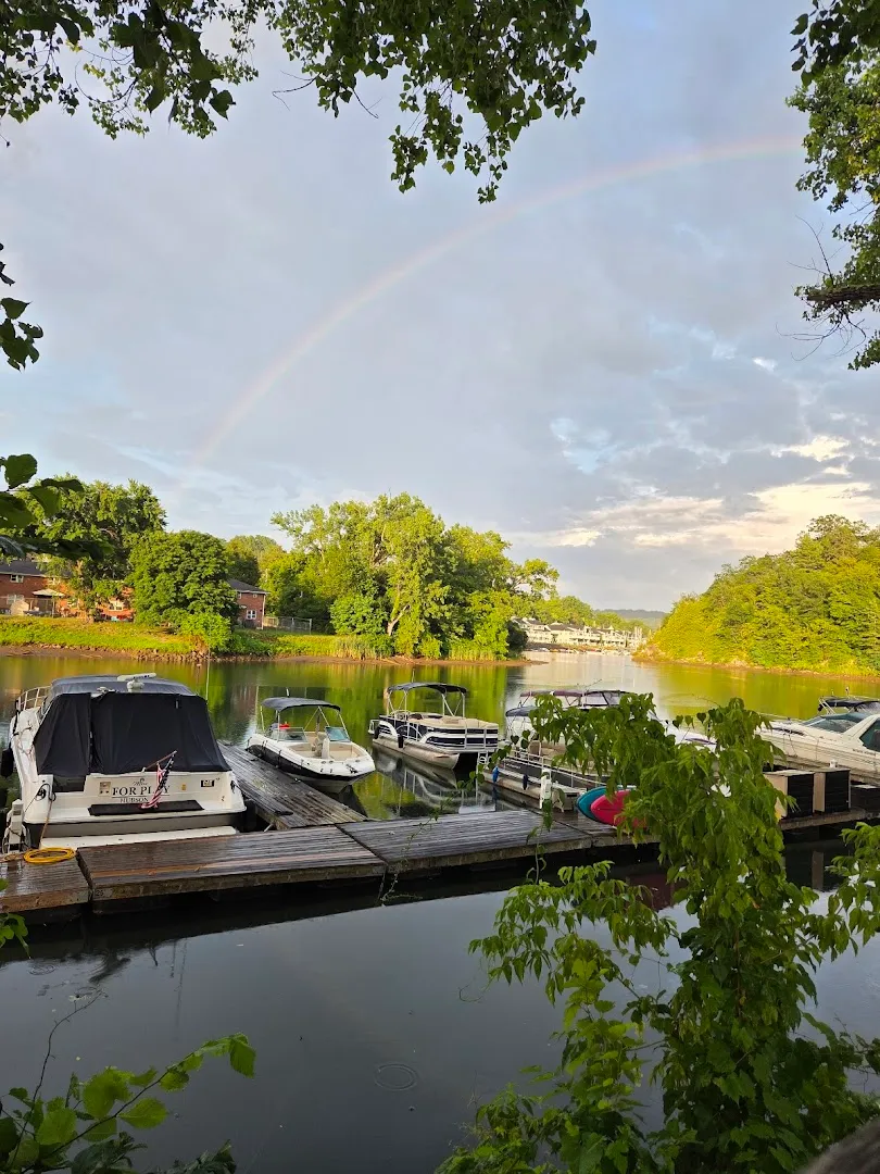 Spring and summer evenings after 7 PM offer the best creekside table chances. Popular with boaters midday on weekends; weekdays are quieter.