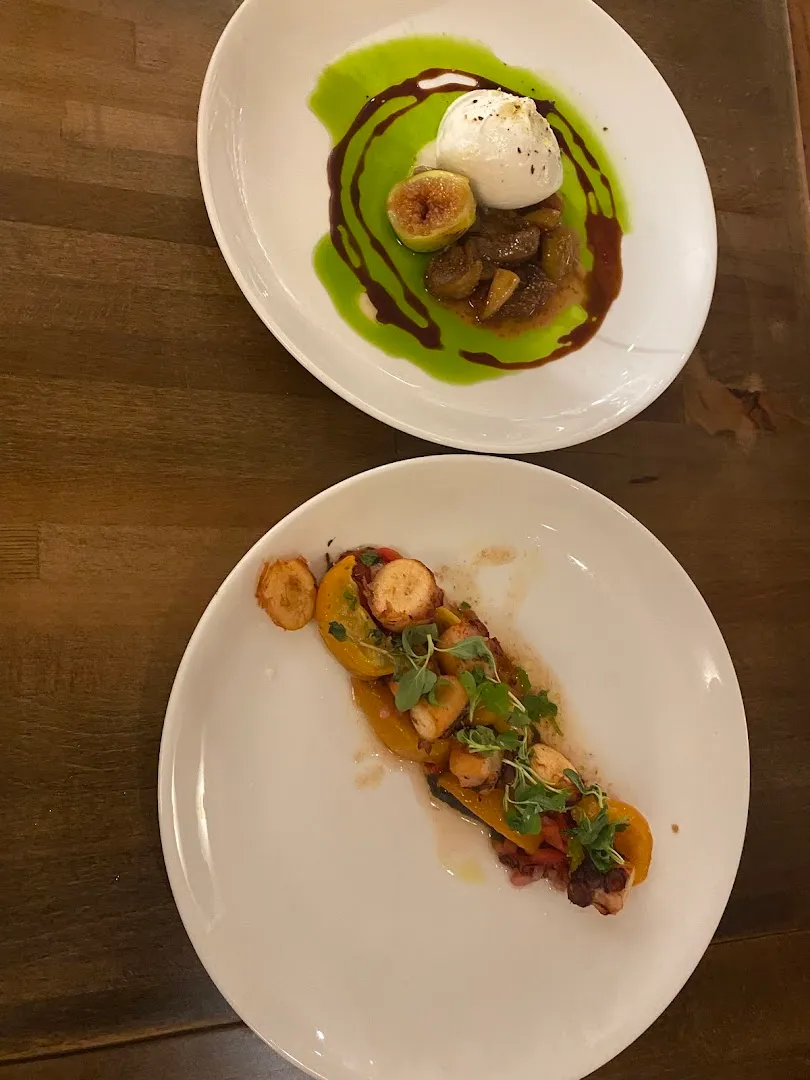 Burrata, Handmade Pasta (rigatoni, bucatini nero, gnocchetti, pappardelle, alla Norma), Grilled Octopus, Duck with chili maple glaze, Ribeye steak, Yellowfin Tuna Tacos, Caesar Salad, Quail, Squid Ink Risotto, Housemade Churros, Panna Cotta, Tiramisu ice cream, Lemon Pistachio ice cream, Seasonal Chef's tasting menu.