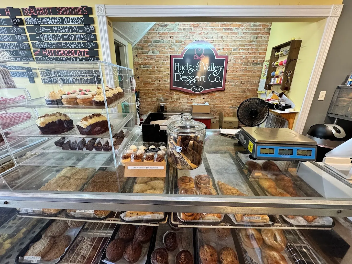 The air always smells faintly of cake and cinnamon when you step inside Hudson Valley Dessert Company. The display case glows with cookies and loaves, while regulars chat over hot drinks at the counter.