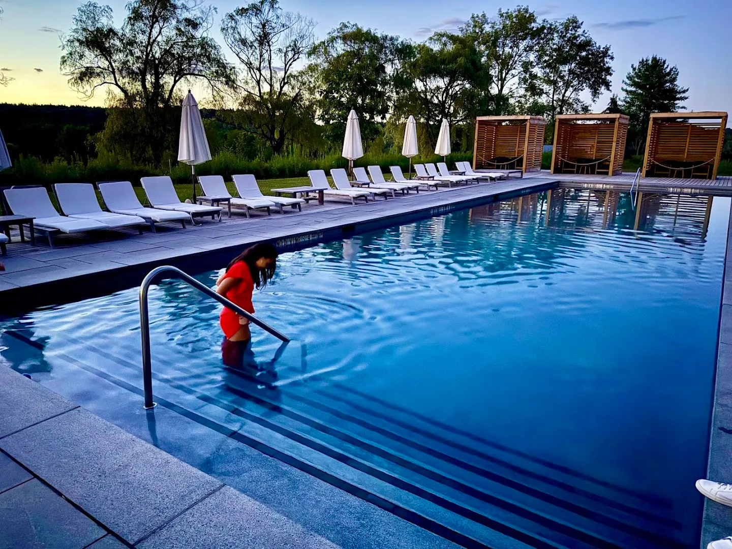 Rooms open onto windswept fields, sprawling golf greens, and distant Shawangunk peaks. Morning fog sits low before the day warms—then, laughter drifts from the pool and bar through tall windows, and quiet settles again at dusk as firepits crackle across the hill.