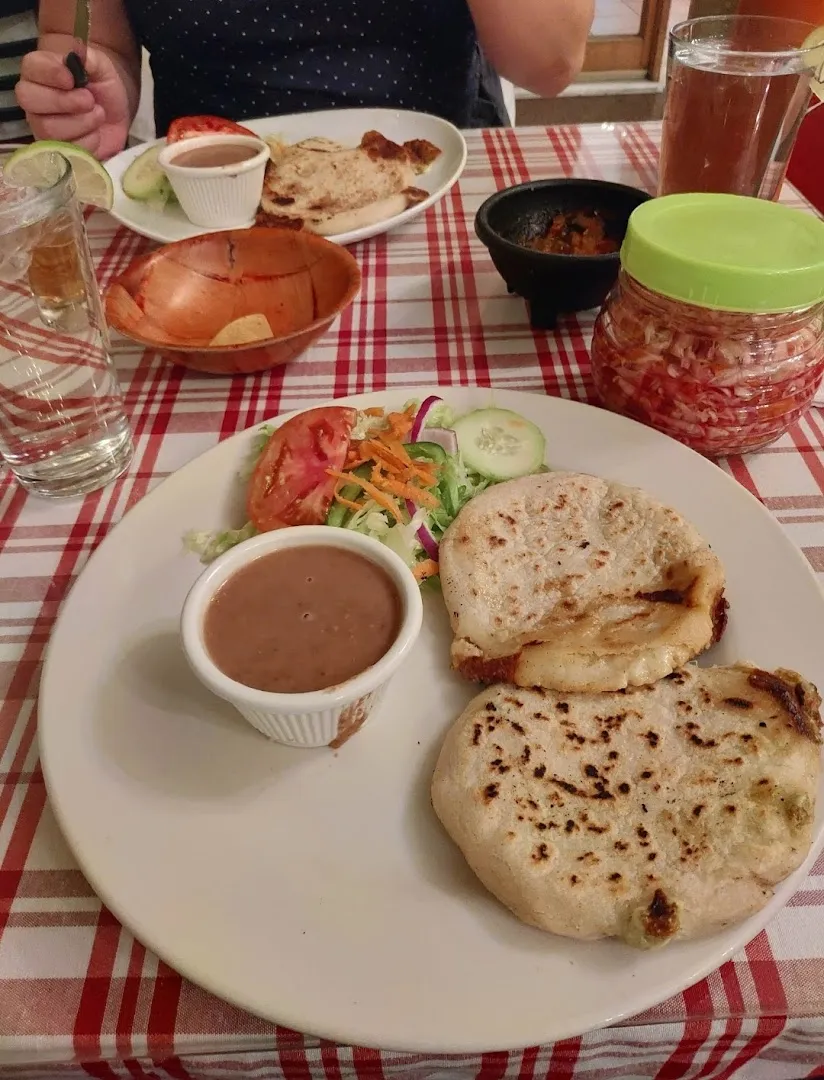 Pupusas (pork, cheese, loroco, spinach, beans), Roasted Chicken Soup, Tamales, Yuca Frita, Carne Asada, Cheese Enchiladas, Burritos, Chips and Salsa, Rice and Beans, Small Plates, Vegetarian Options.