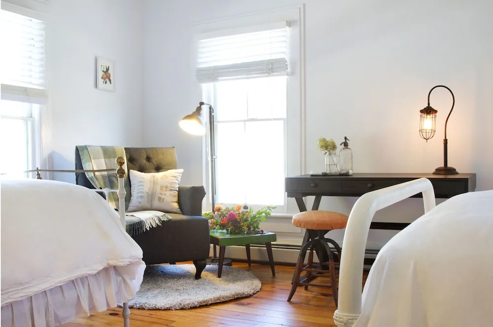 The North Branch Inn sits among tall maples, three clapboard buildings with light streaming in and wood stoves flickering across original floors. It’s the sort of quiet place with parlor breakfasts, a crackling fire, and a chef known for stretching meals long into the morning.
